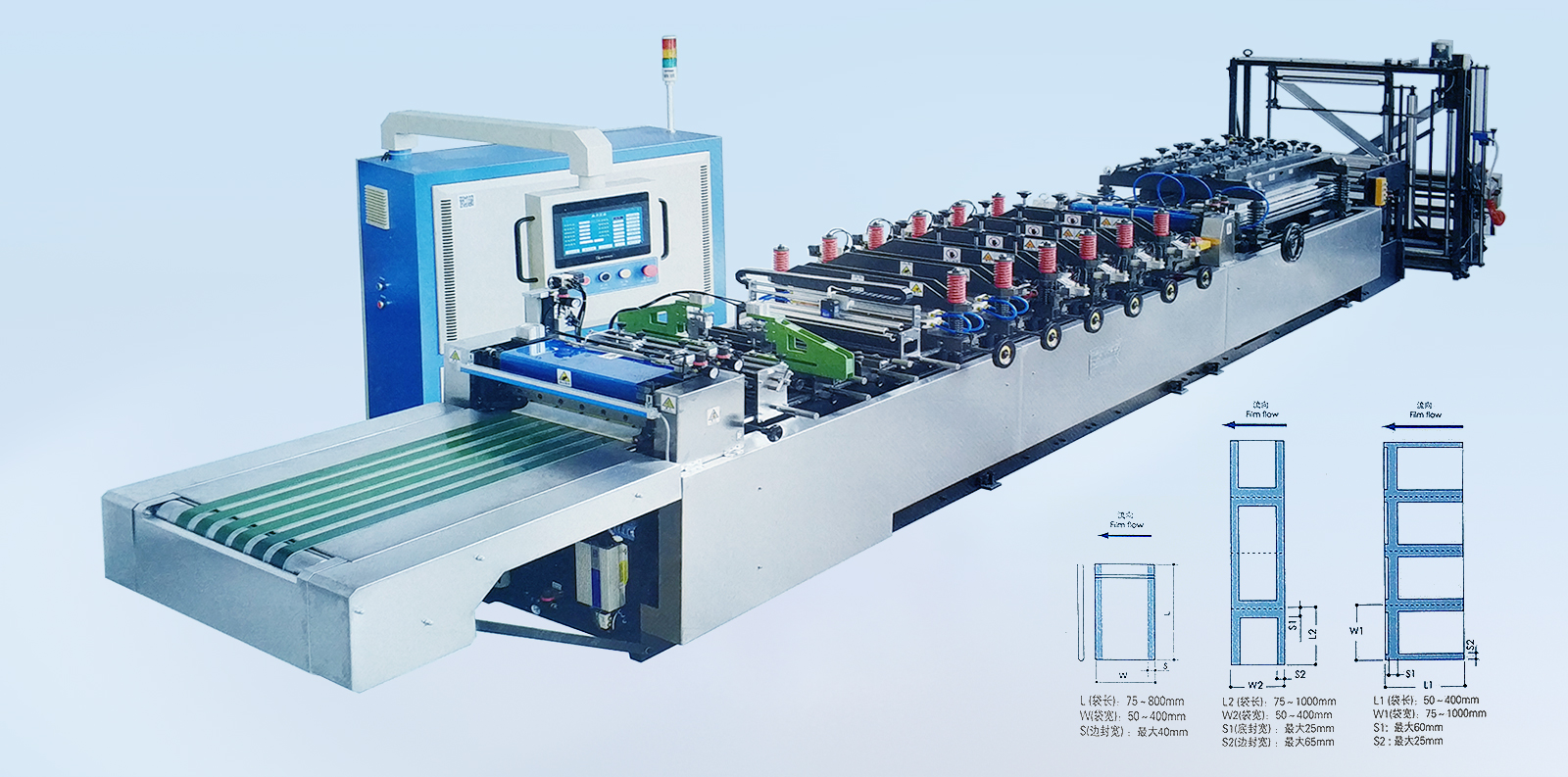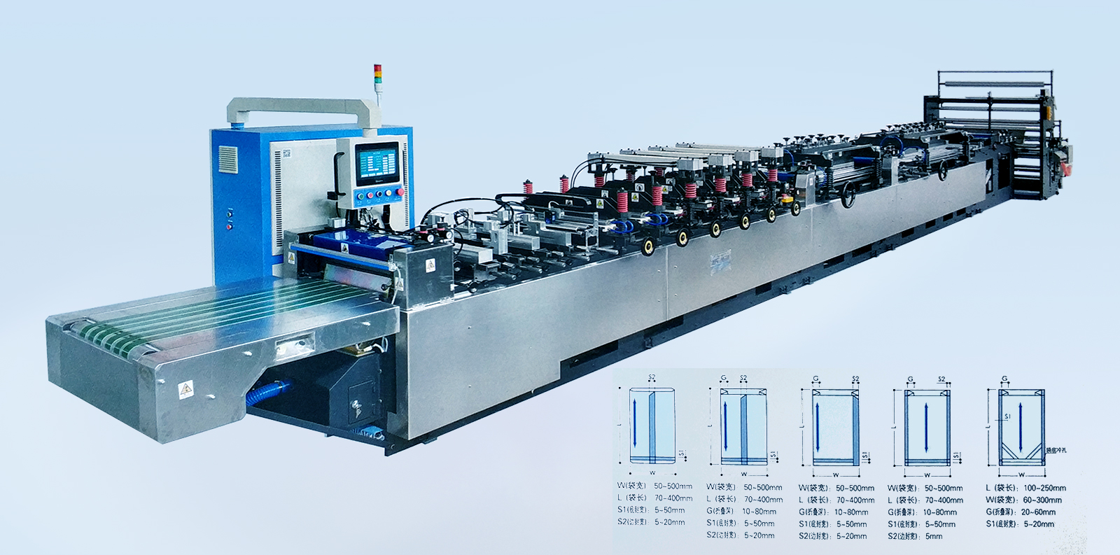YSZD-400B Ⅱ中封、三邊封、四邊封高速全自動制袋機 YSZD-300/400/500ZF中封、側封、四邊封高速全自動制袋機 YSZD-500ZF中封、側封、四邊封高速全自動制袋機 YSZD-500/600/700/800/1000H三邊封高速全自動制袋機 YSZD-600C無接縫站立袋三邊封、站立袋高速全自動制袋機 YSZD-500HK三邊封、站立袋、拉鏈袋、無接縫站立拉鏈袋、儲料架高速全自動制袋機 YSZD-600HB三邊封、站立袋、拉鏈袋高速全自動制袋機 YSZD-600HK三邊封、站立袋、拉鏈袋、無接縫站立拉鏈袋高速全自動制袋機 YSZD-600HK Ⅰ上下圖案跟蹤三邊封、站立袋、拉鏈袋、無接縫站立拉鏈袋高速全自動制袋機 YSZD-600HK Ⅱ CCD視覺定位裁切三邊封、站立袋、拉鏈袋、無接縫站立拉鏈袋高速全自動制袋機 YSZD-800HK三邊封、站立袋、拉鏈袋、無接縫站立拉鏈袋高速全自動制袋機